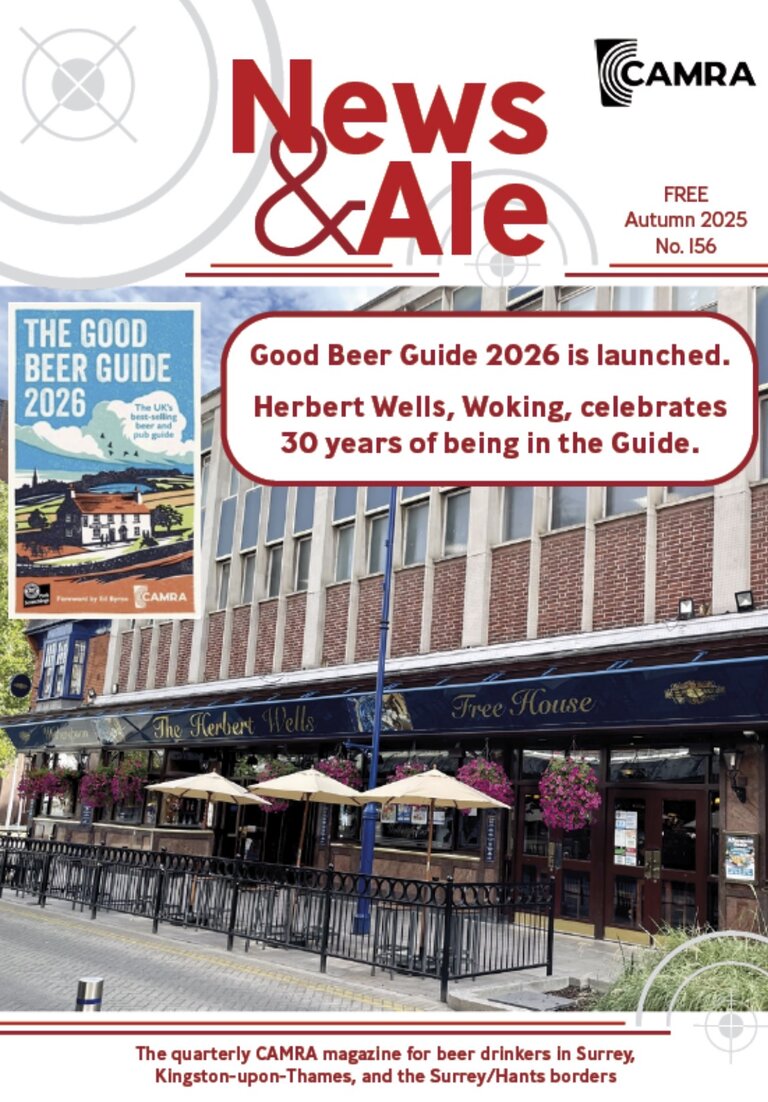 News and Ale is the magazine of the Surrey/Hants Borders branch which is produced in collaboration with the other Surrey branches. It is packed full of articles, pub reviews and brewery news along with a number of advertisements for pubs serving real ale in our area.
